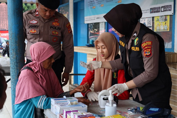 Polres Lampung Barat Gelar Bakti Kesehatan Pengobatan Gratis di Terminal Pasar Liwa dalam Rangka HUT Bhayangkara ke-79