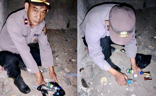 Iptu M. Yusuf menjelaskan, berdasarkan hasil penyelidikan di satu ruangan bekas perumahan SD yang tidak terpakai lagi teparnya di samping ruang belajar mengajar, ditemukan, banyak klip bekas pakai sabu tercecer di lantai serta alat penghisap sabu atau bong.