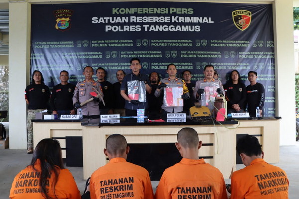tribratanews.lampung.polri.go.id. Tanggamus – Polres Tanggamus berhasil mengungkap kasus Tindak Pidana Pencurian Dengan Pemberatan (Curat) yang terjadi di wilayah Kota Agung, tepatnya di Dusun Pancawarna, Kelurahan Kuripan, Kecamatan Kota Agung, Kabupaten Tanggamus.Tersangka utama yang ditangkap MR alias Pemas (22) warga Kelurahan Kuripan Kec. Kota Agung Kab. Tanggamus Turut ditangkap pelaku penadahan inisial HI (19) warga Kelurahan Pasar Madang, Kota Agung. RA (20) warga Dusun Badak Bangun Pekon Padang Ratu Kec. Limau Kab. Tanggamus. Selain itu, dua remaja perempuan inisial AN (8) dan DY (17) pelajar SLTA warga Kecamatan Kota Agung Timur Kabupaten Tanggamus. Peristiwa pencurian tersebut terjadi pada Jumat 4 Juli 2025 sekitar pukul 02.45 WIB saat rumah korban dalam keadaan kosong karena ditinggal ke Bandar Lampung sejak tanggal 28 Juni 2025. Pengungkapan kasus tersebut disampaikan dalam konferensi pers yang dipimpin oleh Wakapolres Tanggamus, Kompol Gigih Andri Putranto, S.H., S.I.K., M.H., mewakili Kapolres Tanggamus, AKBP Rahmad Sujatmiko, S.I.K., M.H., Selasa 15 Juli 2025. Dalam keterangannya, Wakapolres Kompol Gigih menjelaskan bahwa laporan pencurian ini disampaikan langsung oleh korban Randy Kurniawan, seorang pengacara, yang tinggal di lokasi kejadian. Dalam peristiwa tersebut, pelaku berhasil membawa kabur emas seberat 83 gram beserta surat-surat nota pembeliannya, uang tunai belasan juta rupiah, serta sejumlah barang berharga lainnya. Total kerugian korban ditaksir mencapai Rp150 juta.