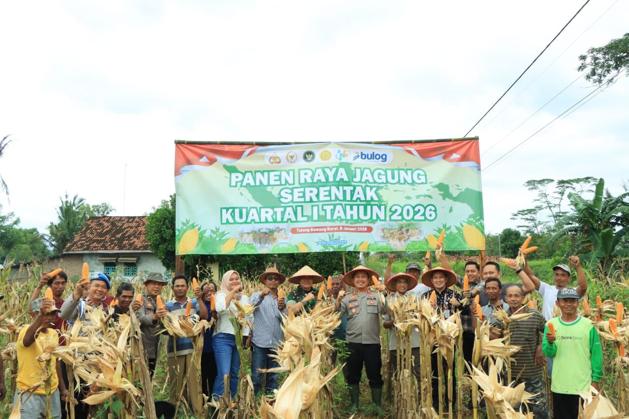 tribratanews.lampung.polri.go.id. Tulang Bawang Barat, Sabtu 10 Januari 2026- Dalam rangka mendukung program prioritas nasional terkait swasembada dan ketahanan pangan, Kepolisian Resor Tulang Bawang Barat melaksanakan kegiatan Panen Raya Jagung Serentak Kuartal I Tahun 2026 di Tiyuh Margodadi Kec. Tumijajar Kab. Tulang Bawang Barat. Kamis (08/07/2025) PagiDalam pelaksanaan kegiatan tersebut dipimpin langsung oleh Kapolres Tubaba AKBP Sendi Antoni, S.I.K., M.I.K,