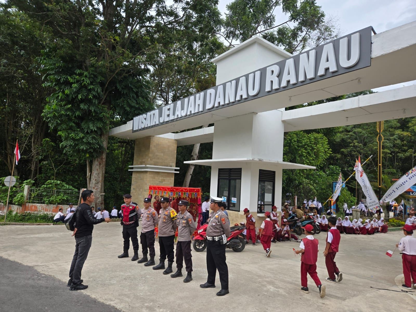 Ketua I Agnesia Bulan Rurianti, S.E., Ketua III Elismawati, A.Md., Sekretaris Dra. Hanita Farial, M.Si., Bendahara Vera Zahara, S.I.P., M.H., serta Ketua Pokja dan staf TP-PKK Provinsi Lampung lainnya. Rangkaian kegiatan kunjungan kerja dimulai pada Minggu sore, 26 Oktober 2025, dengan penyambutan oleh Bupati dan jajaran Forkopimda Lampung Barat. Selanjutnya, Ketua TP-PKK Provinsi Lampung bersama rombongan menginap di Hotel Lumbok Seminung dan melaksanakan ramah tamah bersama pengurus TP-PKK Lampung Barat. Pada Senin (27/10/2025), kegiatan berlanjut dengan peninjauan sentra olahan ikan, penyerahan bantuan sosial, peninjauan Posyandu, UMKM, PAUD, dan gerai Dekranasda Lampung Barat. Acara tersebut juga dimeriahkan dengan arak-arakan penyambutan, tarian tradisional, serta prosesi pembukaan resmi yang diisi dengan menyanyikan lagu kebangsaan, Mars PKK, doa, sambutan, hingga penyerahan bantuan. Adapun bantuan yang diserahkan oleh Ketua TP-PKK Provinsi Lampung meliputi: Modul Posyandu Paket sembako sebanyak 50 paket Kursi roda sebanyak 3 unit Bingkisan sebanyak 150 paket Bibit cabai 100 bungkus Alat bantu pendengaran 2 unit Mesin las sebanyak 5 unit Bantuan pembangunan peningkatan jalan di Pekon Lombok Selatan Selama kegiatan berlangsung, jajaran Polsek Balik Bukit bersama Polres Lampung Barat dan Ditlantas Polda Lampung melaksanakan pengamanan serta pengawalan ketat agar seluruh rangkaian acara berjalan lancar, aman, dan kondusif. Kapolres Lampung Barat AKBP Rinaldo Aser, S.H., S.I.K., M.Si., melalui Kapolsek Balik Bukit IPTU Sabtudin menyampaikan bahwa kegiatan pengamanan dilakukan secara maksimal guna memastikan seluruh rangkaian kunjungan kerja berjalan tertib. “Polsek Balik Bukit bersama personel Polres Lampung Barat melaksanakan pengamanan terbuka dan tertutup serta pengawalan jalur bagi rombongan Ketua TP-PKK Provinsi Lampung agar kegiatan berjalan dengan aman dan kondusif,” ujar IPTU Sabtudin. Kegiatan Kunjungan Kerja Ketua TP-PKK Provinsi Lampung di Kecamatan Lumbok Seminung berakhir pada pukul 14.00 WIB dalam keadaan aman, tertib, dan lancar.