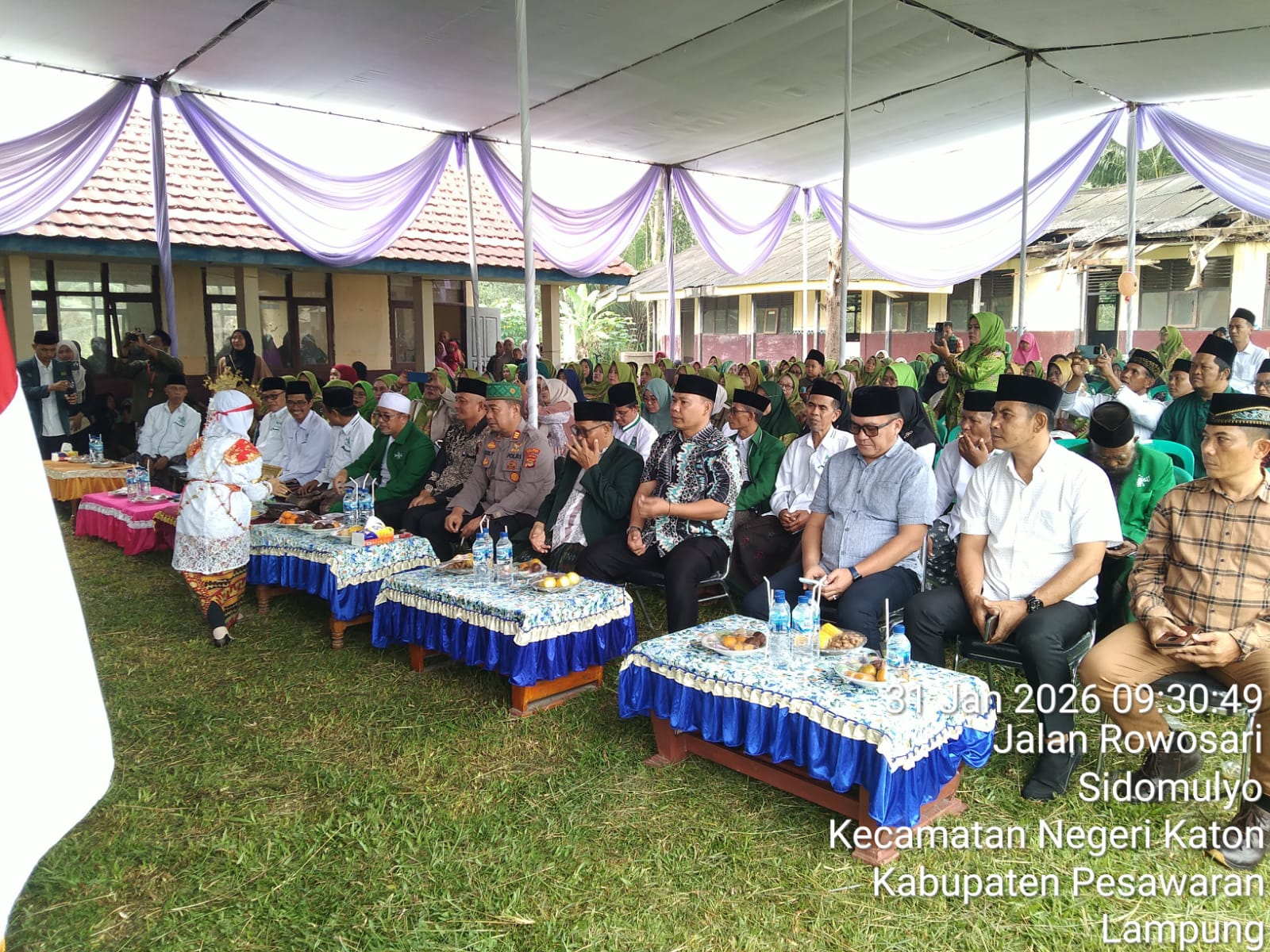 tribratanews.lampung.polri.go.id. Pesawaran Minggu 01 Pebruari 2026 Polres Pesawaran, Polda Lampung — Polsek Gedong Tataan Polres Pesawaran melaksanakan pengamanan kegiatan Tasyakuran Hari Lahir Nahdlatul Ulama (NU) ke-100 yang digelar di wilayah Kecamatan Negeri Katon, Kabupaten Pesawaran, Sabtu (31/01/2026).Pengamanan tersebut dipimpin langsung oleh Kapolsek Gedong Tataan AKP Dedi Yohanes, S.H., M.M., sebagai bentuk kehadiran Polri dalam memberikan rasa aman serta menjaga stabilitas kamtibmas pada kegiatan keagamaan yang dihadiri ratusan jamaah dan tokoh masyarakat. Sejak pagi hari, personel Polsek Gedong Tataan telah disiagakan di lokasi kegiatan dan sejumlah titik strategis guna mengantisipasi potensi gangguan keamanan, sekaligus melakukan pengaturan arus lalu lintas bagi peserta dan tamu undangan yang hadir.