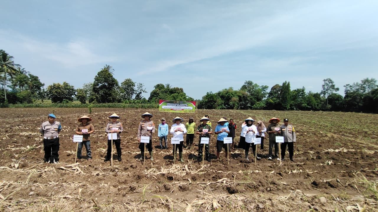 tribratanews.lampung.polri.go.id. Lampung Selatan, Kamis 09 Oktober 2025 — Dalam upaya mendukung program pemerintah mewujudkan swasembada pangan nasional, Polsek Penengahan Polres Lampung Selatan melaksanakan kegiatan Penanaman Jagung Serentak Kuartal IV Tahun 2025 di Desa Banjarmasin, Kecamatan Penengahan, Rabu (8/10/2025) pagi.Kegiatan berlangsung di lahan milik warga seluas 1,5 hektare, dan dihadiri oleh unsur lintas sektoral seperti Kapolsek Penengahan IPTU Donald Afrinsyah, S.H., M.H., Camat Penengahan Saefulloh, S.Pd., M.Pd., Danramil 421-03 Kapten Lubis, serta perwakilan UPTD Pertanian dan kelompok tani setempat. Kegiatan tersebut juga diikuti secara virtual melalui Zoom Meeting bersama Presiden Republik Indonesia, sebagai bentuk dukungan terhadap program nasional swasembada pangan. Dalam kegiatan ini, digunakan bibit jagung jenis ADV dengan total 30 kilogram bibit dan 1,5 ton pupuk. Diharapkan hasil panen mencapai 12 ton. Kapolsek Penengahan IPTU Donald Afrinsyah menyampaikan bahwa kegiatan ini menjadi wujud nyata Polri hadir membantu masyarakat.