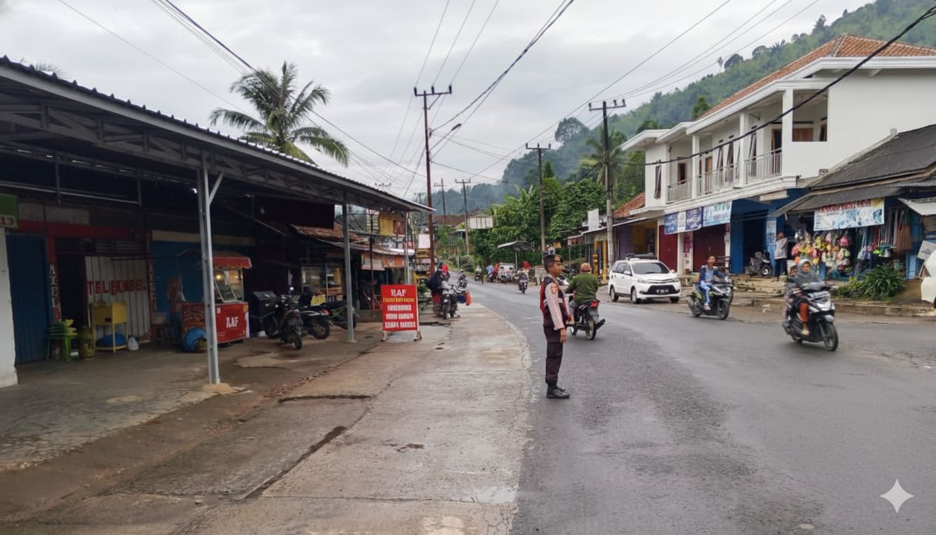 Polsek Sumber Jaya Melakukan Pengaturan Lalu Lintas dan Pengamanan Kegiatan Masyarakat