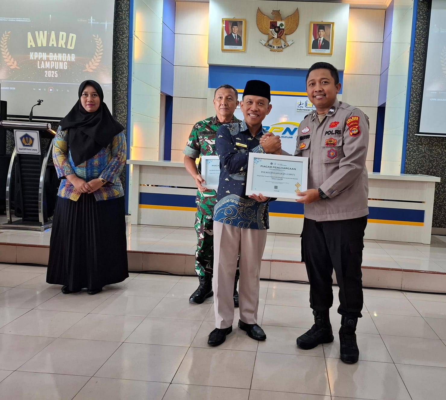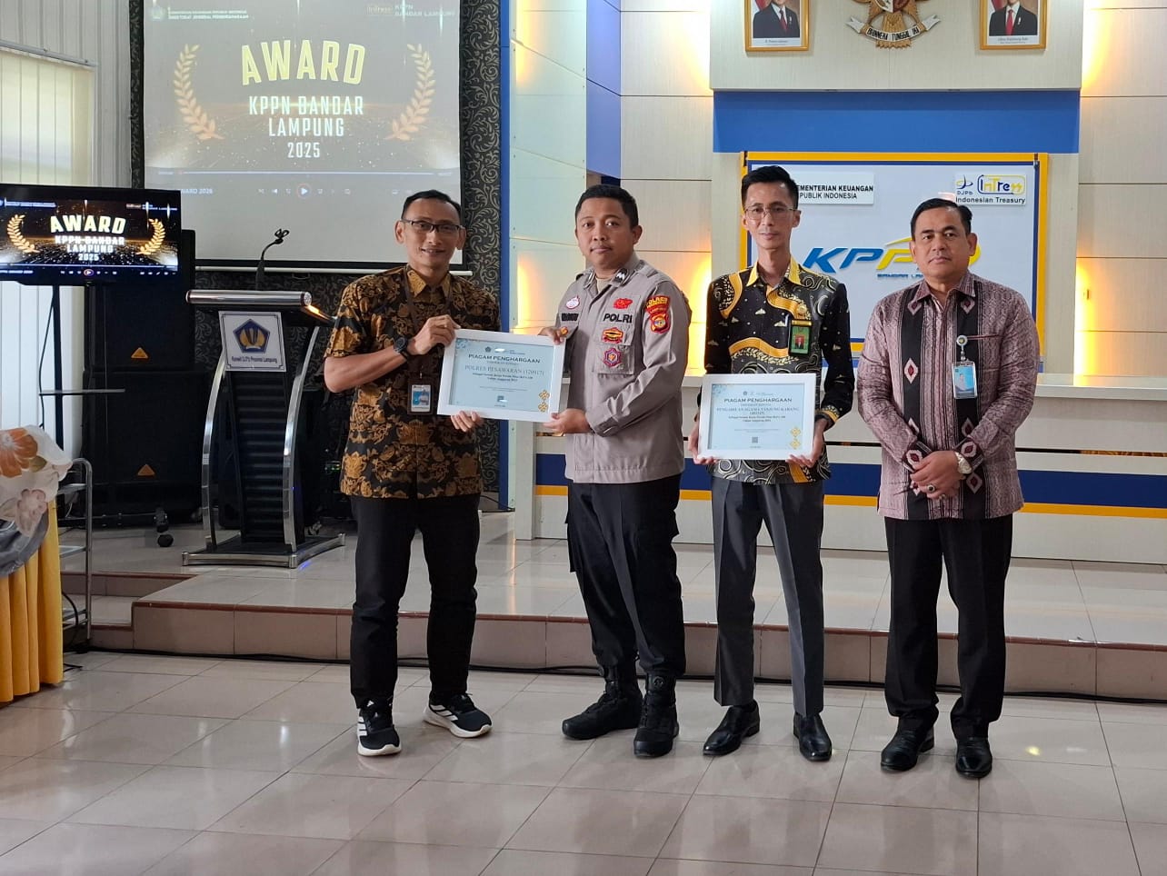 tribratanews.lampung.polri.go.id. Pesawaran, Rabu 11 Pebruari 2026 Polres Pesawaran, Polda Lampung – Kepolisian Resor (Polres) Pesawaran kembali menorehkan prestasi membanggakan di bidang tata kelola keuangan negara. Di bawah kepemimpinan AKBP Alvie Granito P., S.I.K., M.S.S., institusi ini berhasil memborong dua penghargaan sekaligus dalam ajang KPPN Award Bandar Lampung 2025 yang diselenggarakan oleh Kanwil DJPB Kemenkeu Provinsi Lampung pada Jumat pagi, 06 Februari 2026.Kegiatan yang berlangsung khidmat di Aula KPPN Kota Bandar Lampung tersebut dihadiri oleh Kasi Keu Polres Pesawaran yang hadir mewakili Kapolres Pesawaran. Penyerahan penghargaan ini merupakan bentuk apresiasi atas komitmen tinggi Polres Pesawaran dalam menjaga akuntabilitas dan transparansi penggunaan anggaran sepanjang tahun 2025.
