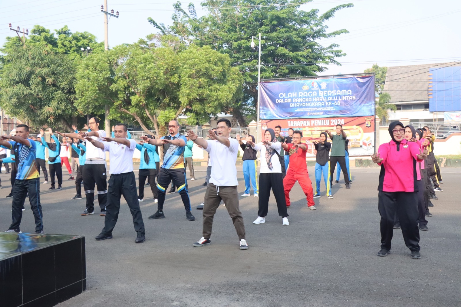 “Pagi hari ini kita melakukan peringatan serangkaian acara menuju hari lalu lintas dengan serangkaian kegiatan olahraga senam bersama,” ungkap Kapolres.