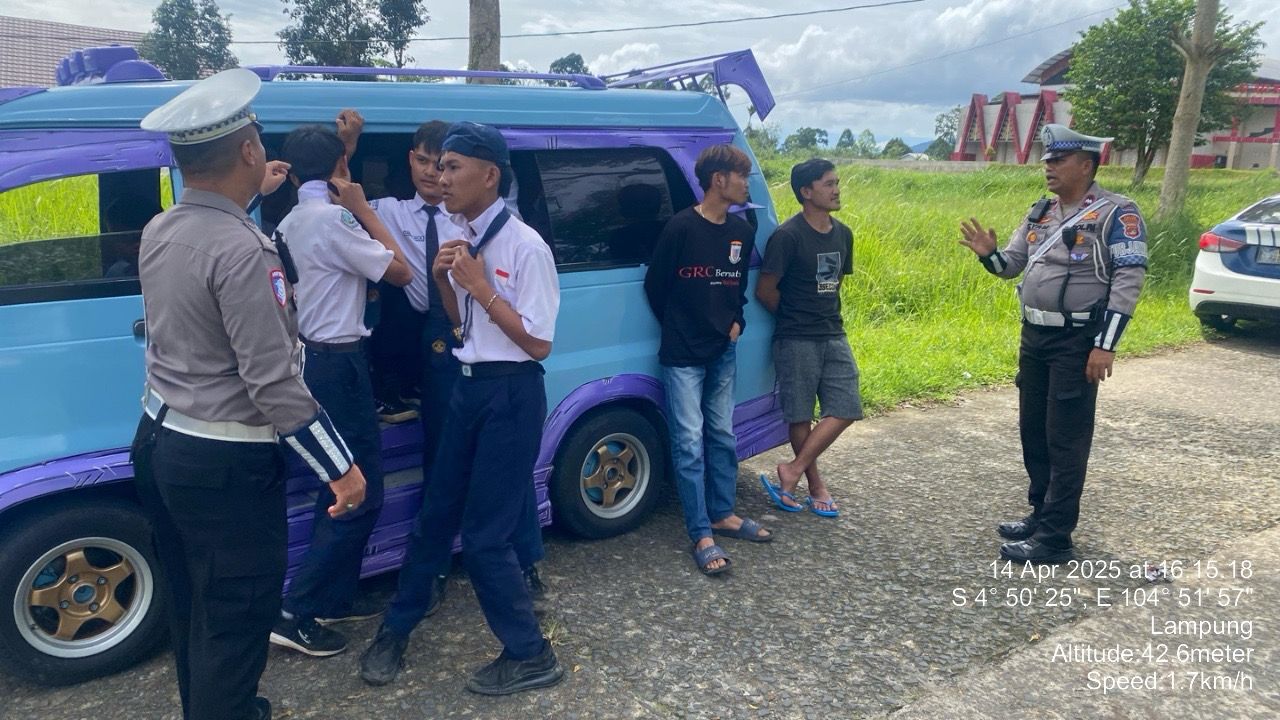 Tribratanews Lampung polri go id. Lampung Barat, Rabu 16 April 2025 Satuan Lalu Lintas (Sat Lantas) Polres Lampung Barat melaksanakan kegiatan patroli dialogis yang difokuskan pada edukasi tertib berlalu lintas kepada para pelajar. Kegiatan ini bertujuan untuk mencegah terjadinya kecelakaan lalu lintas (laka lantas), khususnya akibat perilaku tidak aman saat menggunakan angkutan umum.Kegiatan ini menyasar pelajar yang kerap menggunakan angkot (angkutan kota) sebagai moda transportasi harian. Dalam edukasinya, petugas mengingatkan agar siswa tidak menaiki angkot melebihi kapasitas, serta tidak berdiri di pintu masuk yang sangat berbahaya dan rawan menyebabkan kecelakaan. Kapolres Lampung Barat AKBP Rinaldo Aser, S.H., S.I.K., M.Si., melalui Kasat Lantas Polres Lampung Barat, Iptu Deni Saputra, S.H., M.M., menyampaikan bahwa kegiatan ini merupakan bagian dari upaya preventif dan pendekatan humanis Polri dalam menciptakan keselamatan berlalu lintas sejak usia dini. "Kami ingin menanamkan kesadaran tertib lalu lintas sejak dini kepada pelajar. Kami imbau agar mereka tidak memaksakan diri naik angkot yang sudah penuh, apalagi berdiri di pintu masuk karena itu sangat berbahaya," ujar Iptu Deni. Selain edukasi langsung di lapangan, Sat Lantas juga membagikan brosur keselamatan dan melakukan komunikasi dua arah dengan para pelajar untuk mendengar pengalaman serta kendala mereka dalam menggunakan transportasi umum. Diharapkan, melalui kegiatan ini, angka kecelakaan lalu lintas di kalangan pelajar dapat ditekan, serta tercipta budaya berlalu lintas yang aman dan tertib di wilayah hukum Polres Lampung Barat.