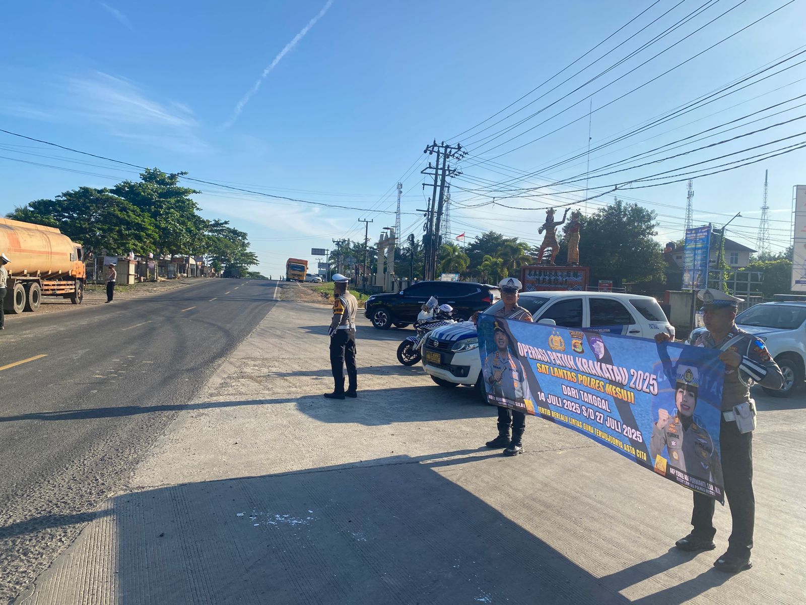 tribratanews.lampung.polri.go.id Simpan Pematang Mesuji, Rabu 23 Juli 2025 – Satgas Preemtif Operasi Patuh Krakatau 2025 Sat Lantas Polres Mesuji melaksanakan kegiatan pemasangan spanduk, baliho, serta pembagian brosur, leaflet, dan stiker yang berisi informasi mengenai pentingnya kepatuhan dan disiplin masyarakat dalam berlalu lintas. Kegiatan ini berlangsung di Simpang Brabasan, Kecamatan Simpang Pematang, Kabupaten Mesuji, pada Rabu (23/07/2025).Kegiatan ini merupakan bagian dari upaya Polres Mesuji untuk meningkatkan kesadaran masyarakat dalam mematuhi aturan berlalu lintas, guna menciptakan keamanan dan keselamatan di jalan raya. Dalam kegiatan tersebut, petugas membagikan berbagai materi edukasi tentang pentingnya penggunaan helm, kelengkapan kendaraan, dan keselamatan berkendara kepada para pengendara yang melintas. “Kegiatan ini bertujuan untuk mengingatkan masyarakat akan pentingnya disiplin berlalu lintas demi keselamatan bersama. Kami berharap dengan adanya informasi yang terpampang jelas melalui spanduk dan baliho, serta pembagian brosur, dapat menumbuhkan kesadaran masyarakat untuk lebih tertib di jalan,” ujar Kasat Lantas Polres Mesuji, Pemasangan spanduk dan baliho yang berisi pesan keselamatan berlalu lintas juga diharapkan dapat menjangkau masyarakat yang tidak hanya melalui pembagian brosur, tetapi juga dapat dilihat oleh masyarakat yang sedang dalam perjalanan. Selain itu, pembagian stiker dan leaflet diharapkan menjadi pengingat bagi para pengendara untuk selalu mematuhi aturan lalu lintas setiap saat. Dengan kegiatan ini, Sat Lantas Polres Mesuji berkomitmen untuk terus memperkuat upaya pencegahan pelanggaran lalu lintas dan menurunkan angka kecelakaan di wilayah Kabupaten Mesuji.