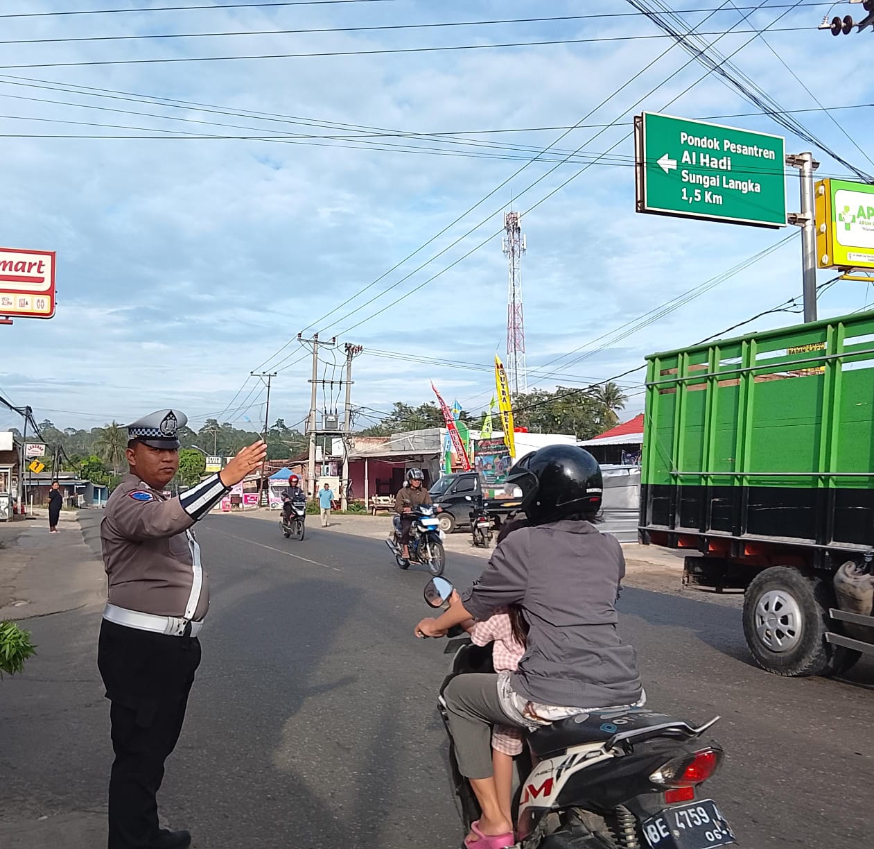 tribratanews.lampung.polri.go.id Pesawaran, Rabu 26 Nopember 2025 Polres Pesawaran, Polda Lampung — Satuan Lalu Lintas Polres Pesawaran terus menguatkan pelayanan publik melalui kegiatan rutin Pam Rawan Pagi. Pada Rabu (27/11/2025) pukul 06.30 WIB, personel Sat Lantas melaksanakan pengaturan lalu lintas di Simpang Bernung, Kecamatan Gedong Tataan, Kabupaten Pesawaran, sebagai upaya memastikan kelancaran mobilitas masyarakat pada jam sibuk.Kegiatan ini dilaksanakan oleh Brigpol Zain, yang bertugas melakukan pengaturan arus kendaraan, monitoring situasi lalu lintas, serta membantu masyarakat menyeberang agar tercipta keamanan dan kenyamanan di titik rawan kepadatan pada jalur lintas barat (Jalinbar) Pesawaran.