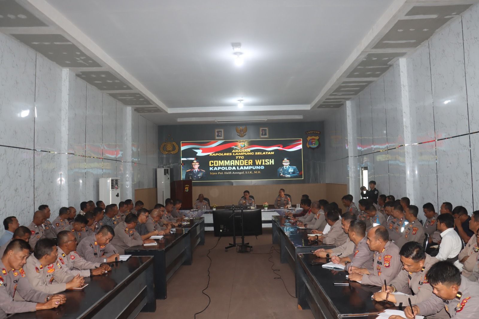 Dalam arahannya, Kapolres menekankan pentingnya menyelaraskan langkah dan strategi satuan kewilayahan dengan program Commander Wish Kapolda Lampung, sebagai pedoman kerja yang terintegrasi antara Polres dan Polda dalam menjaga keamanan dan ketertiban masyarakat.