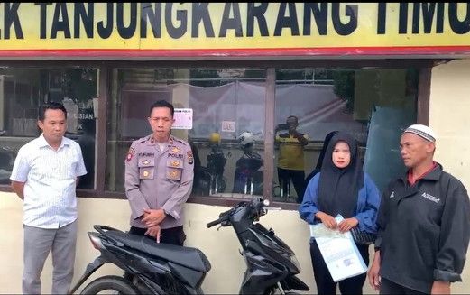 tribratanews.lampung.polri.go.id. Bandar Lampung, Kamis 02 Oktober 2025 - Polsek Tanjung Karang Timur berhasil menemukan sepeda motor milik seorang perempuan berinisial TA (27), warga Kelurahan Sukabumi, Bandar Lampung, yang hilang dicuri. Sepeda motor tersebut kemudian diserahkan kepada sang pemilik.Barang bukti sepeda motor hasil curian diserahkan langsung oleh Kapolsek Tanjung Karang Timur, Kompol Kurmen Rubiyanto di Mapolsek Tanjung Karang Timur, Sabtu (27/9/2025).