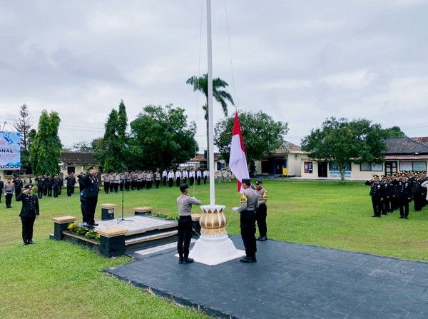 tribratanews.lampung.polri.go.id. Way Kanan, Senin 19 Januari 2026 Polres Way Kanan menggelar Upacara Hari Kesadaran Nasional (HKN) dan Penganugerahan Tanda Kehormatan Polres Way Kanan Tahun 2026 terhadap 20 personel Kepolisian di Lapangan Parama Satwika Polres Way Kanan. Senin (19/01/2026).Seperti diketahui, upacara HKN merupakan upacara bendera yang rutin dilaksanakan setiap bulannya. Upacara dilakukan sebagai momentum peningkatan kualitas pelayanan kepada masyarakat. Dalam pelaksanaannya, Upacara HKN dipimpin langsung oleh Kapolres Way Kanan AKBP Didik Kurnianto, S.I.K pejabat utama, para Kapolsek Jajaran Polres Way Kanan, anggota dan ASN Polres Way Kanan. Upacara dimulai pukul 08.00 WIB, diawali dengan pengibaran bendera Merah Putih. Dalam amanatnya, Kapolres Way Kanan AKBP Didik Kurnianto, S.I.K menyampaikan upacara HARI kesadaran nasional merupakan upacara yang harus dilaksanakan dan diikuti dalam upaya peningkatan disiplin sebagai abdi negara dan abdi masyarakat guna mewujudkan insan Polri yang berintegritas dan memiliki nilai – nilai cinta terhadap Negara Kesatuan Republik Indonesia. Upacara hari kesadaran nasional merupakan upacara yang harus dilaksanakan dan diikuti dalam upaya peningkatan disiplin sebagai abdi negara dan abdi masyarakat guna mewujudkan insan polri yang berintegritas dan memiliki nilai – nilai cinta terhadap Negara Kesatuan Republik Indonesia. Pada saat ini, selain kita melaksanakan upacara hari kesadaran nasional kita juga melaksanakan penganugerahan tanda kehormatan berupa satya lencana pengabdian personel Polres Way Kanan Tahun 2026. Tentunya secara simbolis diberikan kepada yakni Kasat Binmas AKP Sundoro yang mendapatkan penganugerahan tanda kehormatan berupa Satya Lancana Pengabdian XXIV Tahun, Kapolsek Kasui Iptu Nursyamsi mendapatkan Satya Lancana Pengabdian XXXII Tahun dan Satya Lancana Pengabdian VIII Tahun diberikan kepada Bamin Sikue Polres Way Kanan Brigpol Enang Sumantri. Saya mengajak kepada seluruh hadirin peserta upacara untuk menanamkan kembali semangat semangat bela negara dan cinta, tanah air, dengan terus menjaga, merawat dan melestarikan budaya – budaya bangsa ini, nilai – nilai kerukunan dan nilai – nilai ideologi pancasila, karena hal ini merupakan salah satu cara guna merawat keutuhan wilayah NKRI. Semoga Tuhan Yang Maha Esa Allah SWT senantiasa memberikan perlindungan kepada kita semua dalam memberikan pelayanan yang terbaik kepada masyarakat, bangsa dan negara Demi Polri yang PRESISI,” Imbuhnya.