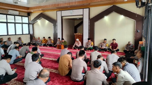 tribratanews.lampung.polri.go.id. Mesuji, Jumat 28 Maret 2025– Wakapolres Mesuji Kompol Heru Sulistyananto, S.H., M.H. memimpin kegiatan Pembinaan Rohani dan Mental (Binrohtal) bagi anggota Polres Mesuji di Masjid Trisna At-Taubah. Kegiatan ini bertujuan untuk meningkatkan keimanan dan ketakwaan personel dalam menjalankan tugas kepolisian dengan penuh tanggung jawab serta berlandaskan nilai-nilai spiritual.Dalam kegiatan ini, tausyiah dan pembinaan rohani disampaikan oleh Gus Maksum sebagai penceramah. Beliau memberikan motivasi serta penguatan mental kepada anggota kepolisian agar selalu mengedepankan integritas, keikhlasan, dan profesionalisme dalam menjalankan tugas sehari-hari, terutama dalam memberikan pelayanan kepada masyarakat. Wakapolres Mesuji dalam sambutannya menyampaikan bahwa kegiatan Binrohtal ini merupakan bagian dari pembinaan mental anggota agar tetap memiliki hati yang bersih dan semangat yang kuat dalam menghadapi berbagai tantangan tugas di lapangan. "Kegiatan ini penting sebagai pengingat bagi kita semua bahwa tugas yang kita emban adalah amanah. Dengan memperkuat iman dan mental yang baik, kita bisa menjalankan tugas dengan lebih bijaksana serta selalu berada di jalur yang benar," ujar Kompol Heru Sulistyananto, S.H., M.H. Anggota Polres Mesuji yang mengikuti kegiatan ini tampak antusias dan khusyuk dalam mendengarkan tausyiah. Diharapkan melalui pembinaan ini, seluruh personel dapat menjalankan tugas dengan lebih baik, menjunjung tinggi etika serta semakin dekat dengan masyarakat dalam memberikan perlindungan, pengayoman, dan pelayanan. Binrohtal ini akan terus menjadi agenda rutin Polres Mesuji sebagai upaya membentuk pribadi anggota yang berakhlak mulia serta profesional dalam bertugas.
