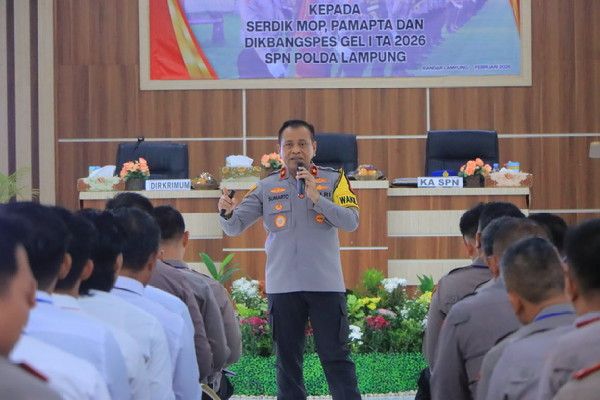 tribratanews.lampung.polri.go.id. Lampung — Wakapolda Lampung, Brigjen Pol Drs Sumarto M.Si, menegaskan pentingnya kepemimpinan yang kuat, profesional, dan berintegritas saat memberikan pembekalan kepada peserta pendidikan Manajemen Operasional Polsek (MOP), Pamapta dan Dikbangpes Gel I Tahun 2026 di SPN Polda Lampung, Rabu (11/2/2026).Kegiatan yang digelar di Aula Subarkah SPN Polda Lampung tersebut menjadi momentum strategis dalam membentuk karakter dan kapasitas manajerial personel Polri, khususnya yang akan bertugas di lini operasional kewilayahan.
